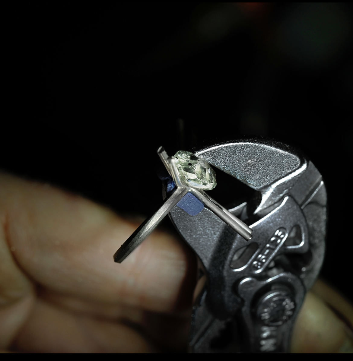 Vores guldsmede arbejder med respekt for hver enkelt diamants rå individualitet. Stenen sætter præmissen for, hvad vi kan skabe. At arbejde med rå diamanter er et fintfølende og krævende håndværk, som kræver præcision og en intuitiv forståelse for stenens særlige egenskaber. Det er en nænsom proces, hvor vi lader diamantens sande karakter komme til sin ret.