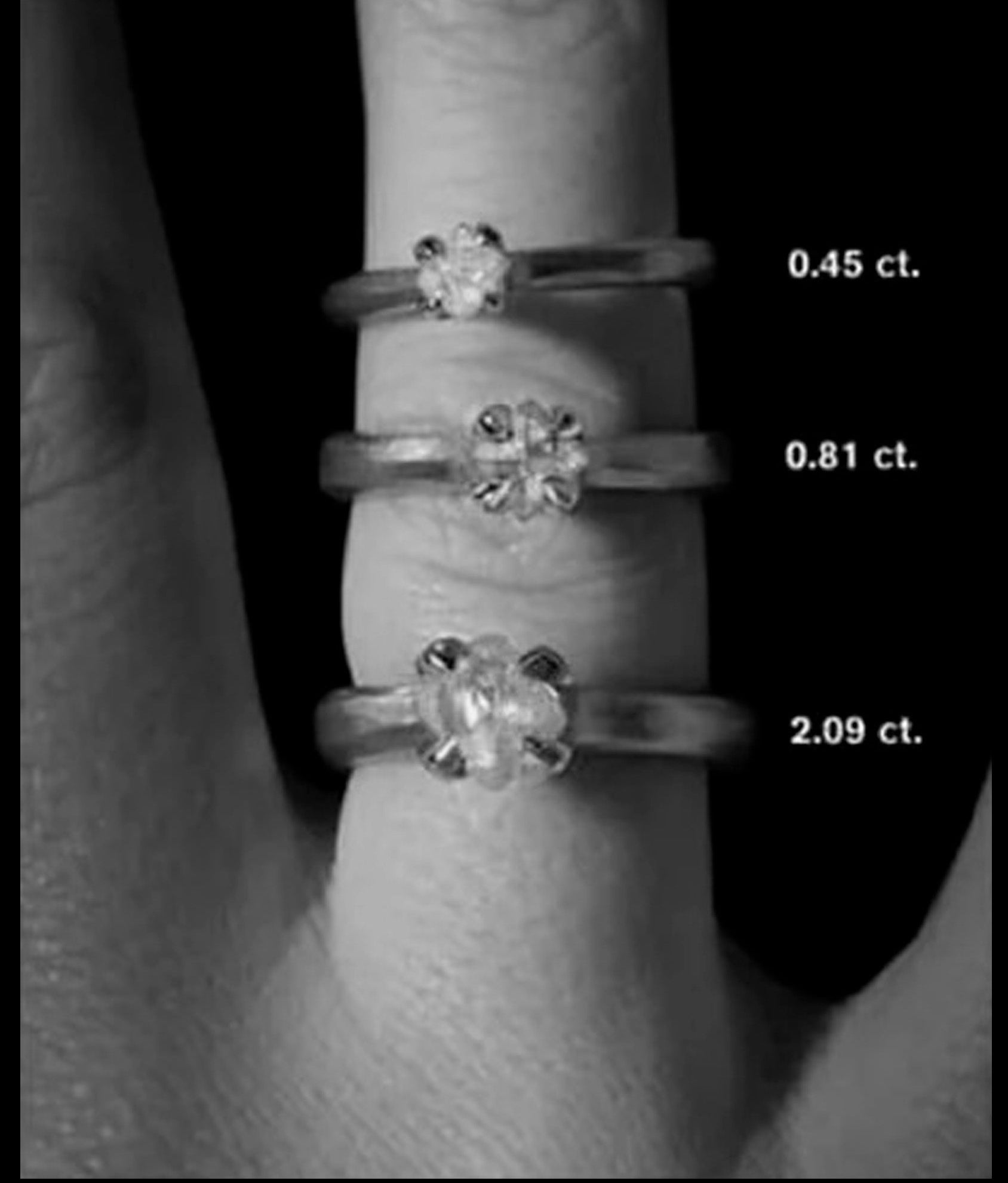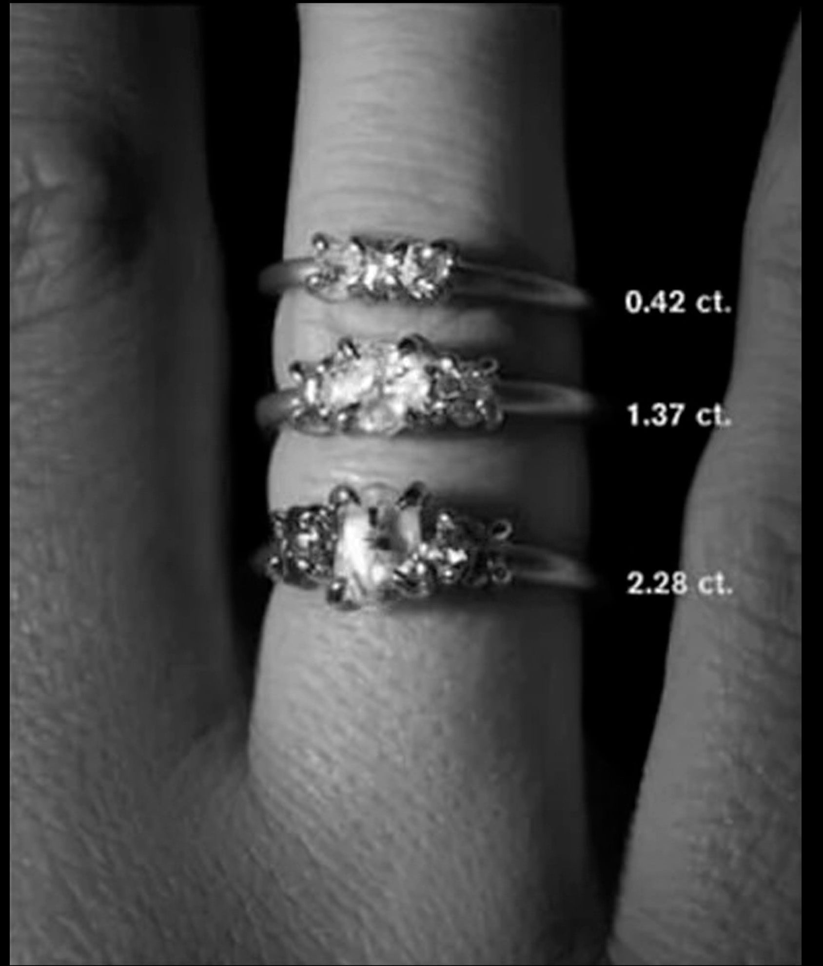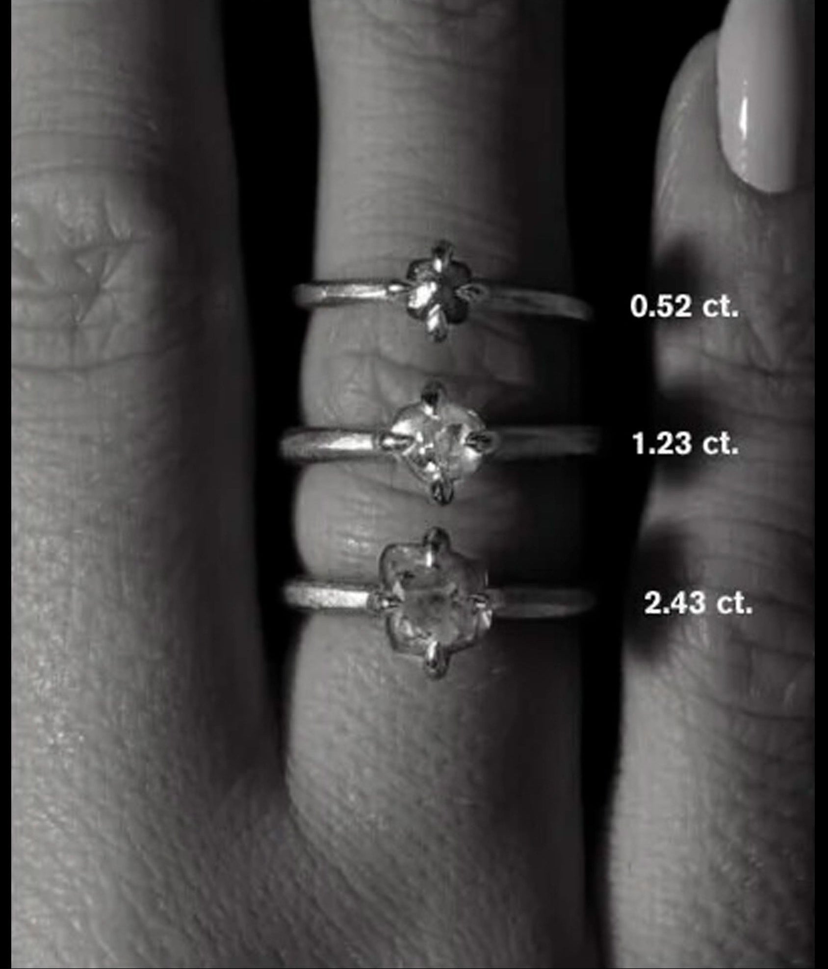 Denne lille guide giver dig et indtryk af størrelsen på forskellige diamanter og hvordan de tager sig ud, når de bliver indfattet i en ring.