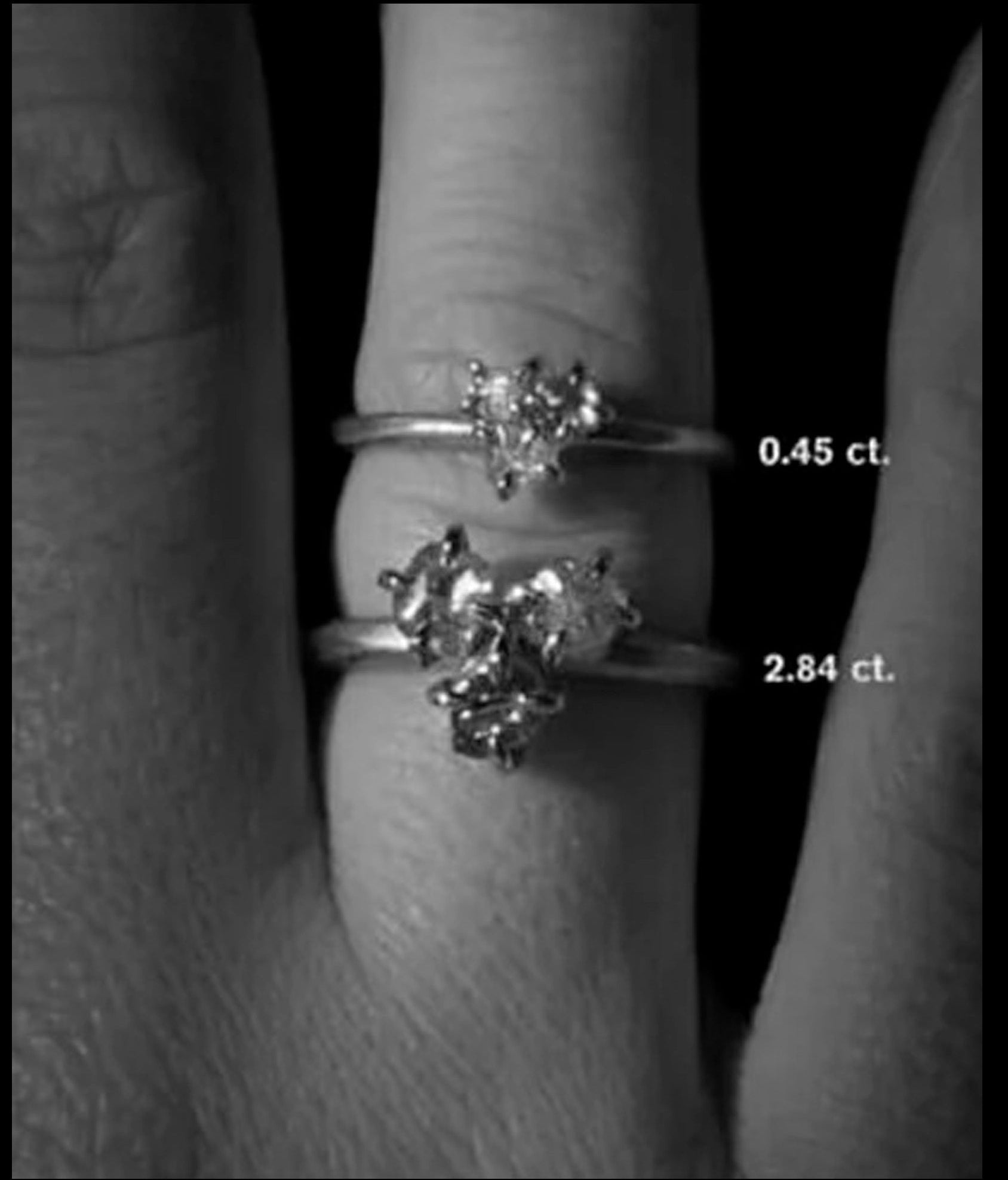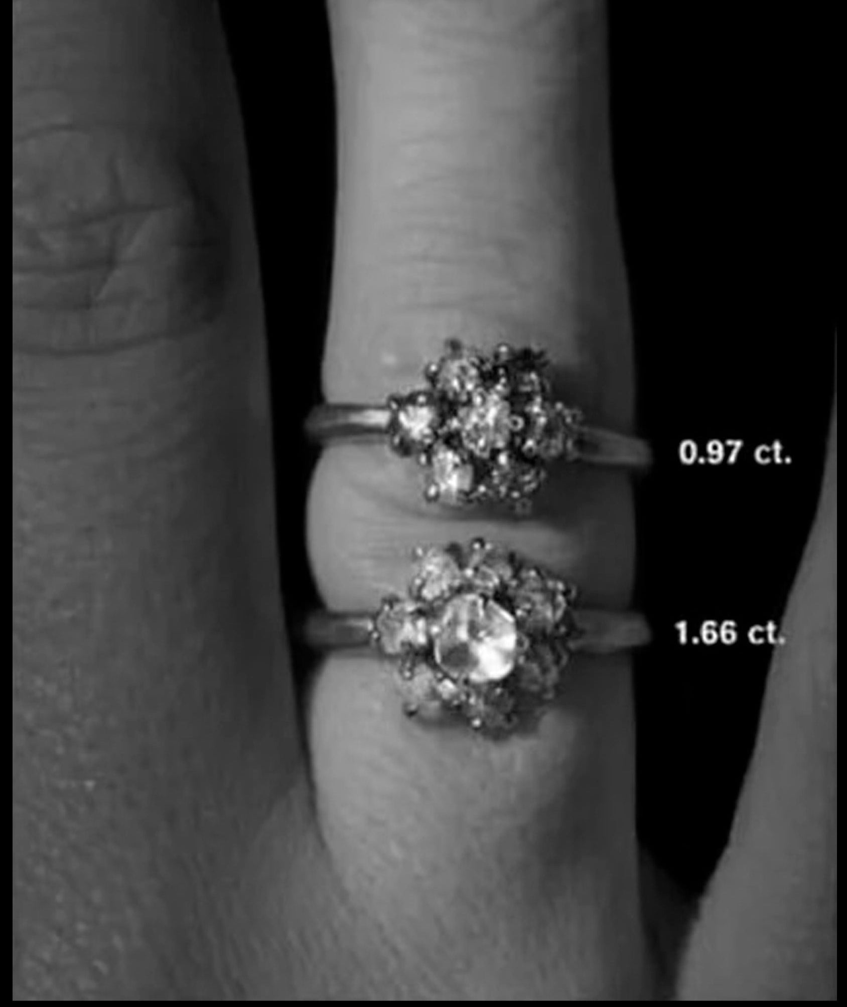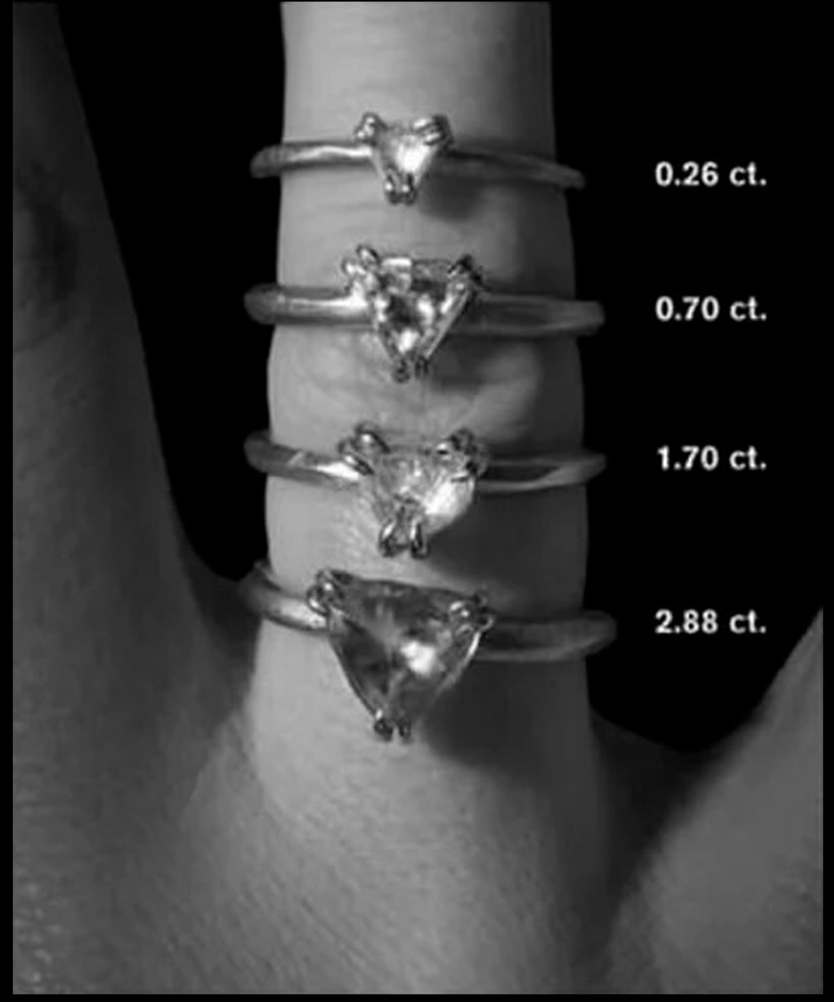 Denne lille guide giver dig et indtryk af størrelsen på forskellige diamanter og hvordan de tager sig ud, når de bliver indfattet i en ring.